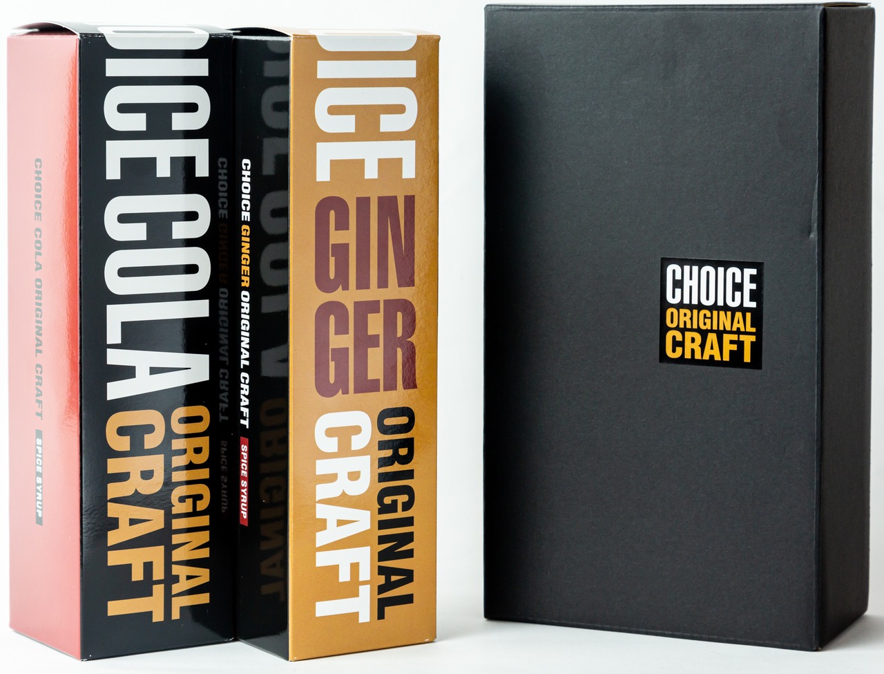 大阪・心斎橋『BAR CHOICE』プロデュースのオリジナルスパイスシロップ【CHOICE COLA ORIGINAL CRAFT(チョイスコーラ・オリジナルクラフト)】と【CHOICE GINGER ORIGINAL CRAFT(チョイスジンジャー・オリジナルクラフト)】を1本ずつのミックスBOXです。